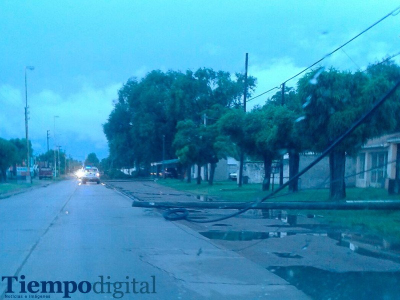 La intensa tormenta y las fuertes ráfagas de viento que azotaron nuestra ciudad en la madrugada de hoy, determinaron el accionar de los efectivos de Bomberos Voluntarios de 9 de Julio, personal de la CEyS y Municipalidad de 9 de Julio, en distintos puntos de la ciudad donde se registraron caídas poste de cables eléctricos, caídas de árboles y voladuras de techos.