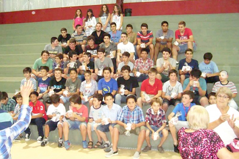 Y volviendo a la cena, se realizaron homenajes: a la C.D. (recibieron Hernán Bono y Federico Raineri); al Patín por colaborar también en cada evento; a la sub comisión de Rugby por su ayuda permanente; a Gilda Catalán, siempre disponible; a Miguel González (abuelo de Santino Spitale, jugador de mini) que acompañó a todos los partidos de local y visitante y fue nombrado hincha número uno de las categorías formativas; Juan Carlos Bravo y Sra. por su colaboración; a los profes Mariano Alba, Andres Pastori y Franco Zuliani. Después se hicieron menciones: a los jugadores ternados a la fiesta del deporte, y en cada categoría a los mejores compañeros y a los mejores progresos del 2015