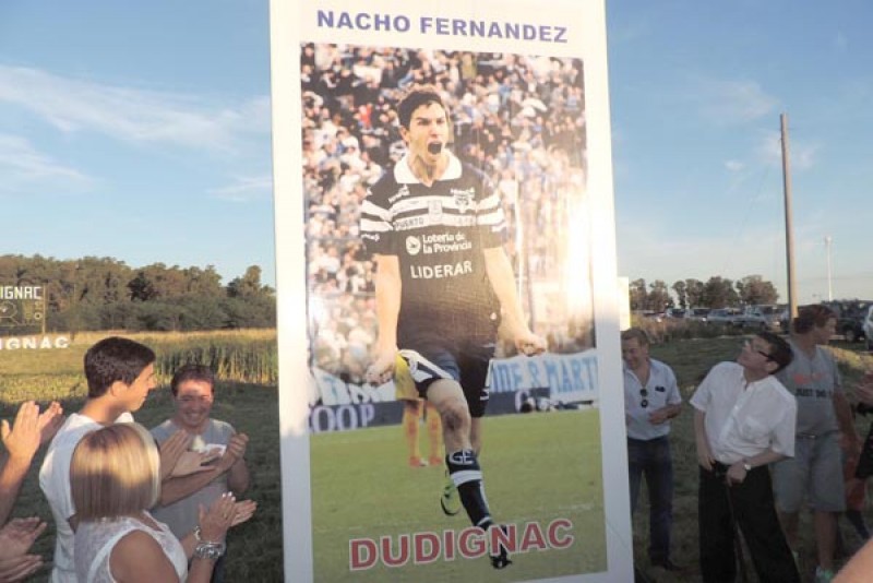 Como nuestro medio lo anticipara, el pasado miércoles 23, la comunidad de la localidad de Dudignac tributó un emotivo homenaje al futbolista Ignacio “Nacho” Fernández (25) -surgido de las inferiores de la institu-ción representativa de este pueblo, el Club Atlético So-cial y Deportivo Dudignac, y que actualmente milita en Gimnasia y Esgrima La Plata-, mediante un sencillo acto que incluyó el descubri-miento de una gigantografía con su imagen en el acceso desde Ruta Provincial Nro. 65. Si bien el lugar de naci-miento del volante ofensivo del conjunto “Tripero” de la ciudad de La Plata es Castelli, Ignacio Fernández, hijo de Pablo Fernández y Sara Sainz, es de cuna dudignaquense, ya que la familia se radicó allí desde cuando era muy pequeño, y allí vivió toda su infancia, dando los primeros pasos con la pelota.