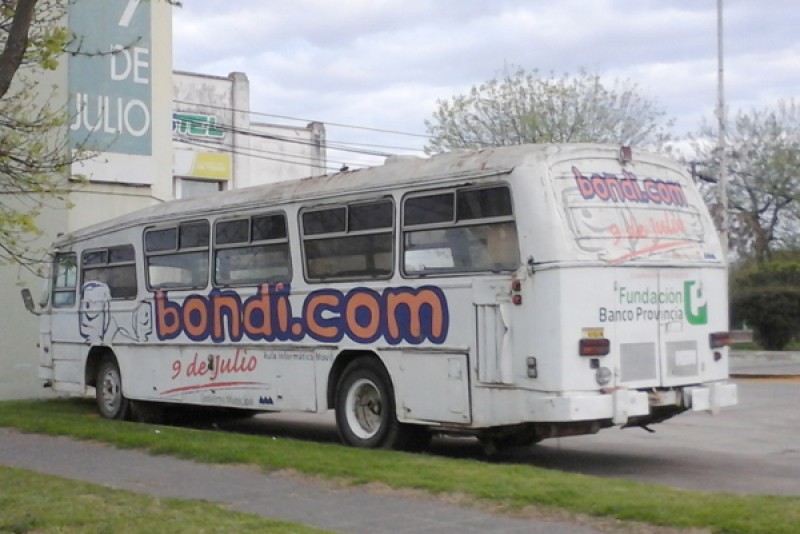 El viejo micro municipal que se convirtiera años atrás en el denominado “Bondi.Com”, dependiente de la Universidad Popular ”Arturo Illia” y que tuviera por finalidad acercar las nuevas tecnologías informáticas a personas mayores y de bajos recursos, recorriendo los distintos barrios de la planta urbana y las localidades del interior del distrito, luce desde hace aproximadamente 6 meses a la fecha abandonado a su suerte en la playa de estacionamiento de la Terminal de ómnibus de 9 de Julio.