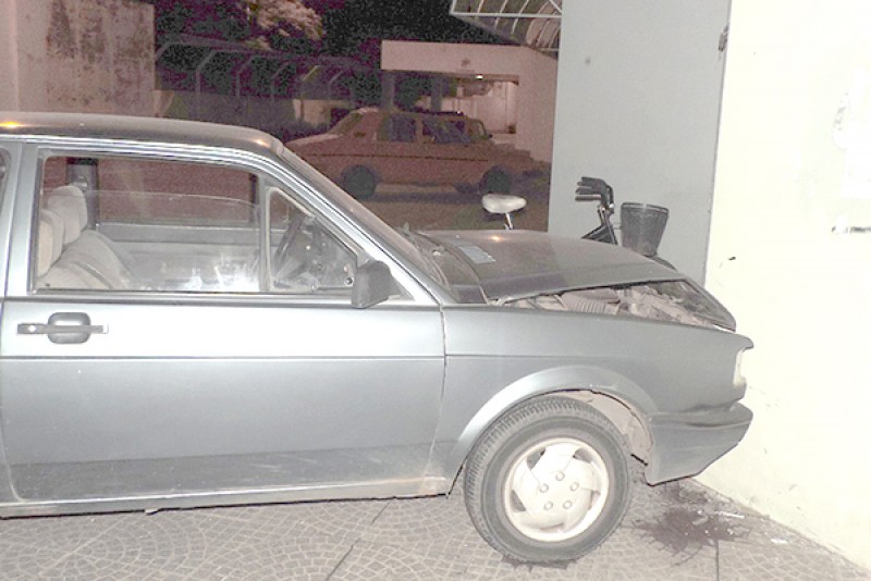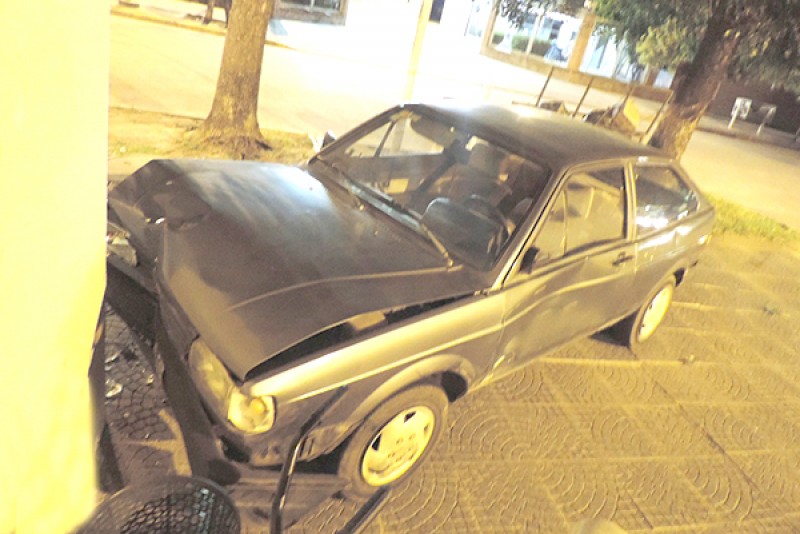 La moto golpeó en la puerta VW Gol, provocando que el vehículo siguiera derecho, subiera a la vereda y terminara golpeando contra el edificio de la terminal.