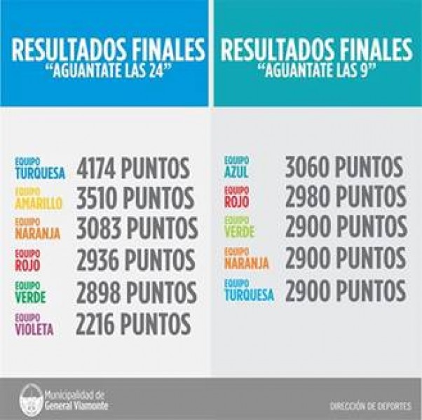 La Dirección de Deportes presentó los resultados finales de los juegos "Aguantate las 24" y "Aguantate las 9".