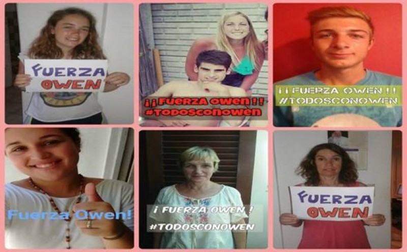 Usando fotos en las que está impresa la consigna #todosconowen buscan darle fuerza al joven y su familia en este tremendo momento.