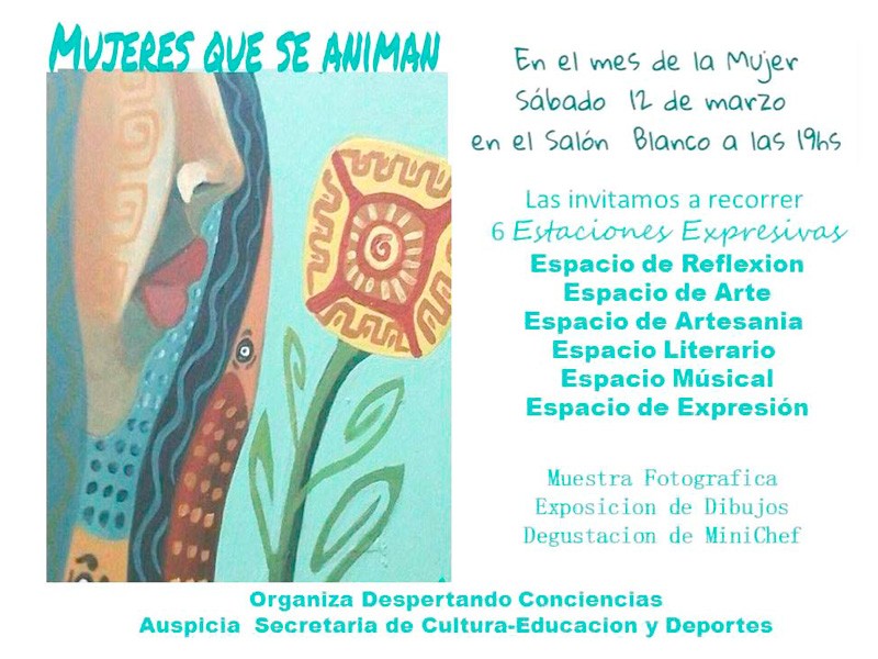 Somos mujeres que pertenecemos a diferentes grupos y nos animamos a intervenir con nuestro hacer el Salón Blanco, invitando al resto de las mujeres a participar e interactuar con nosotras.