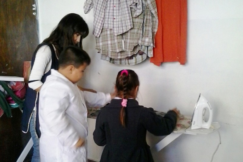 Por otra parte, se está desarrollando un proyecto de fabricación de bolsas para compras, a partir de bolsas de arpillera reutilizadas, a las que le colocan una estampa realizada con sachets de leche y bolsas de color termofusionadas.