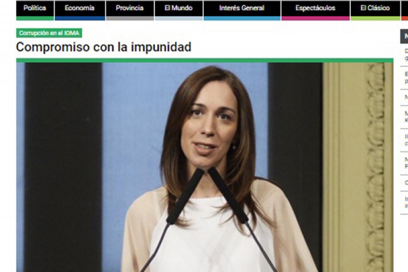 Desde el diario Hoy se ha levantado como bandera la defensa del IOMA, denunciando los casos de corrupción acaecidos a su interior, dando nombre y apellido de todos aquellos personajes que rapiñaron dinero público llevando adelante una depredación de la obra social. En innumerable cantidad de investigaciones, desde nuestras páginas se dio cuenta de las denuncias presentadas por los trabajadores asqueados por el abuso de los dirigentes del organismo. Mostramos como se ejecutó un plan de despojo con venta clandestina de medicamentos oncológicos de alto costo, sobreprecios en prótesis e insumos, que significaron un desfalco a los intereses de los bonaerenses. A pesar de todos estos elementos, Vidal no ejecutó ningún plan para dar con los culpables de la devastación del Instituto. Esta actitud asumida por la mandataria ha llevado a que en los corrillos políticos se esté hablando que su acción pasiva se debería a un compromiso de impunidad firmado con el anterior gobierno para no llevar la corrupción a la Justicia.