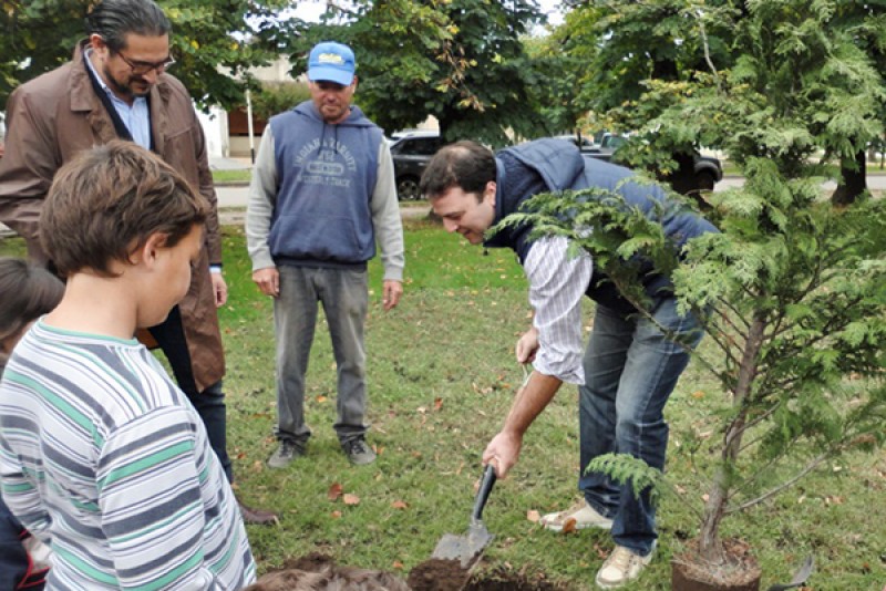 El Intendente Barroso, junto al Ing. Huerta, procedió a la plantación de un árbol en adhesión al festejo.