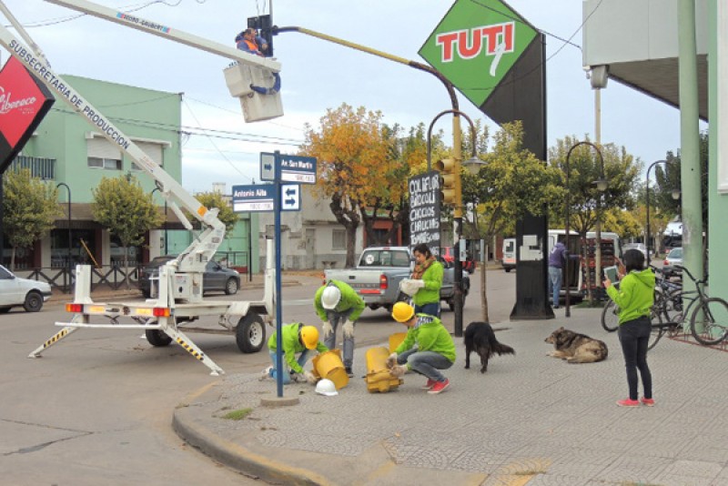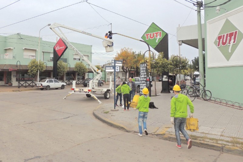 La Municipalidad de Nueve de Julio, junto a la Escuela de Educación Secundaria Técnica Nº 2 “Mercedes Vázquez de Labbé” se encuentra instalando los nuevos semáforos led en la intersección de avenidas San Martín y Antonio Aita, en la vigencia del convenio suscripto con dicha institución escolar para la aplicación de las prácticas profesionalizantes.