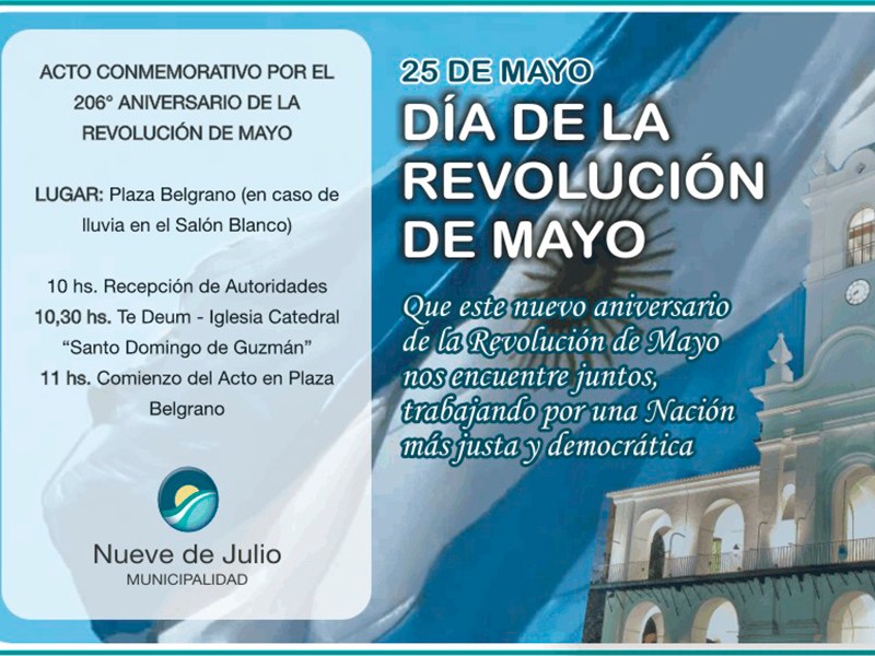 Posteriormente, a las 10,30 hs., se ofrecerá el tradicional Te Deum en la iglesia Catedral “Santo Domingo de Guzmán”, y a las 11 hs. se iniciará el acto central en Plaza Belgrano.
