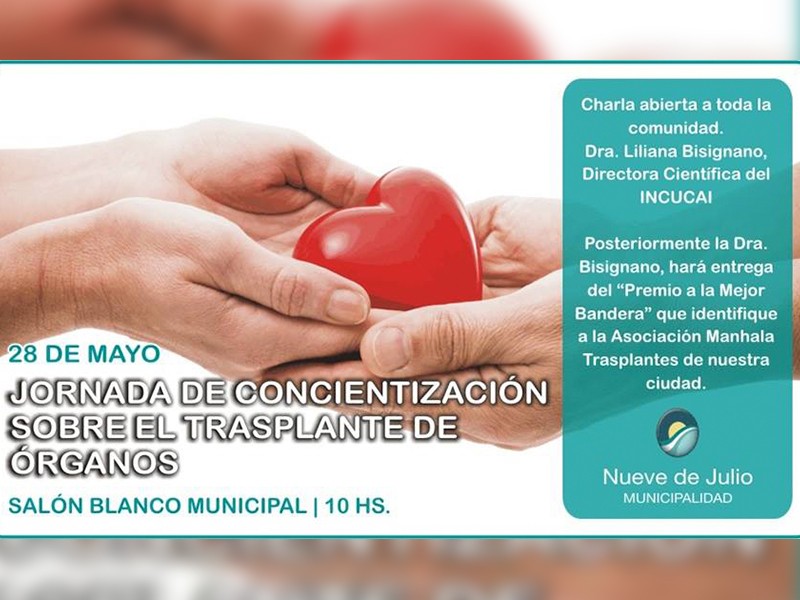 La Secretaría de Salud y la Secretaría de Cultura, Educación y Deportes de la Municipalidad de Nueve de Julio, comunican que la charla enmarcada en la “Jornada de Concientización Sobre el Trasplante de Órganos”, originalmente programada para el día sábado 28 de mayo en el Salón Blanco Municipal, desde las 10 hs., debió ser suspendida por razones de fuerza mayor.