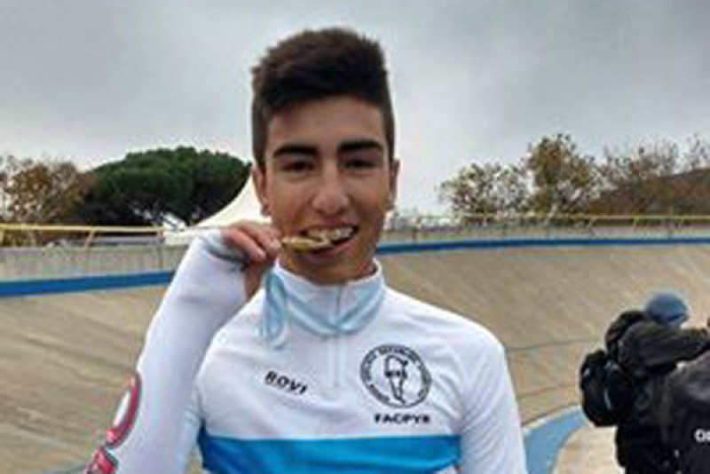 Rodrigo Corro corrió su competencia a las 11hs. en la denominada Vueltas Puntuables en varones clase 2002 en un carrerón.