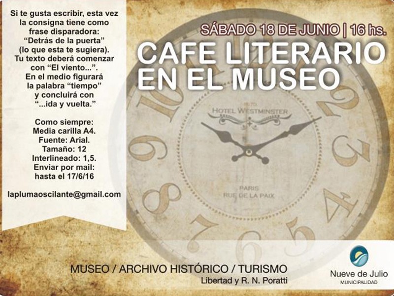 A quienes les guste escribir, pueden acercarse con un microrelato. Este mes la convocatoria tendrá como frase disparadora: “Detrás de la puerta” (lo que ésto te despierte).