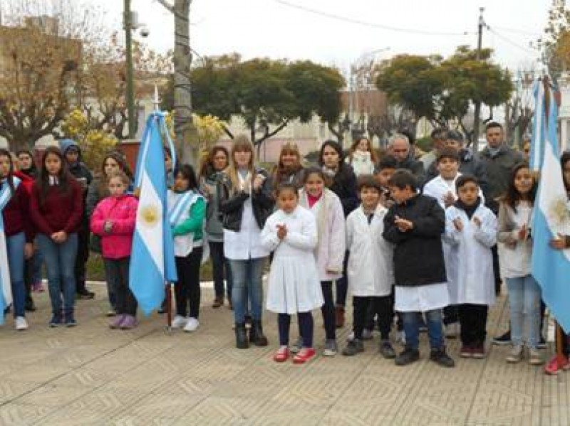 La comunidad educativa de la E.P. N°1 "Domingo Faustino Sarmiento", y la Dirección de Cultura de nuestro municipio, realizaron el lunes a la mañana el acto Central en la Plaza Rivadavia.