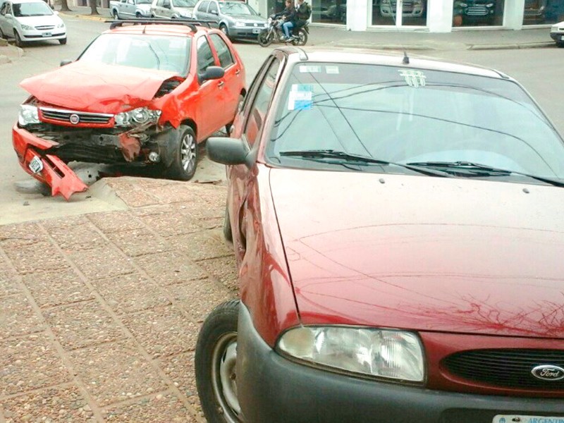 Poco después de las 14 hs. de ayer, en la intersección de Mendoza y La Rioja, y por causas que se tratan de establecer, un automóvil Ford Fiesta que circulaba por la calle La Rioja, al llegar a la intersección de Mendoza, fue embestido por un Fiat Palio, lo que provocó que el primer vehículo terminara íntegramente sobre una de las veredas de la mencionada esquina y el Palio quedara a 45 grados sobre la calzada.