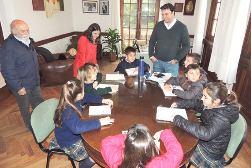 En la mañana de ayer, el Intendente Municipal de Nueve de Julio, Cdor. Mariano Barroso, recibió en su despacho, junto al Director del Museo y Archivo Histórico “Julio de Vedia”, Prof. Roberto Castro, a los alumnos de tercer año del nivel primario del Colegio Los Ceibos, quienes con sus docentes, dialogaron sobre el quehacer del Ejecutivo local.