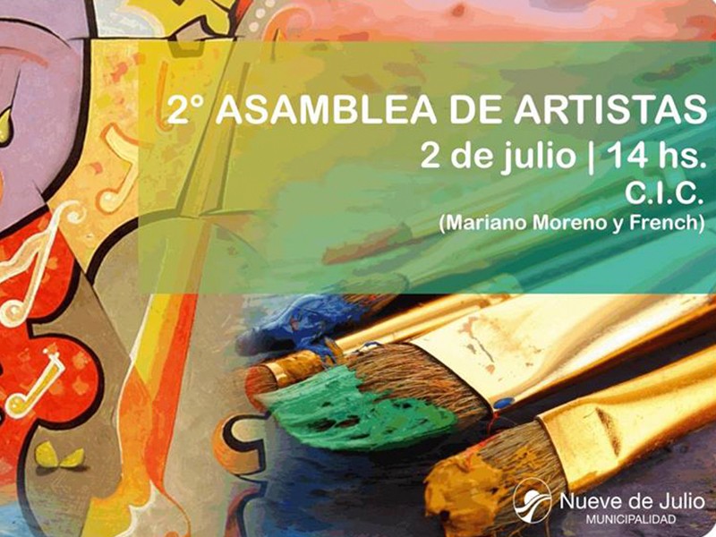 Mañana sábado 2 de julio, desde las 14 hs., y en el Centro Integrador Comunitario (CIC) de calles Mariano Moreno y French, tendrá lugar la 2da. Asamblea de Artistas de Nueve de Julio, promovida por la Secretaría de Cultura, Educación y Deportes de la Municipalidad de Nueve de Julio, en busca de generar un espacio abierto y colectivo de artistas y trabajadores de la cultura.