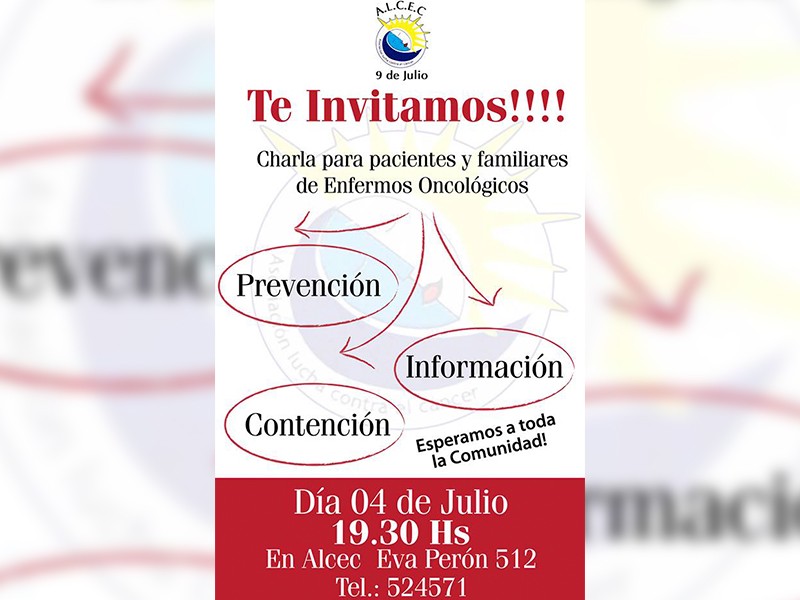 La charla informativa se realizará en ALCEC, Eva Perón 512 el lunes 4 de julio a las 19.30hs. Tel. 02317-533332, 524571.