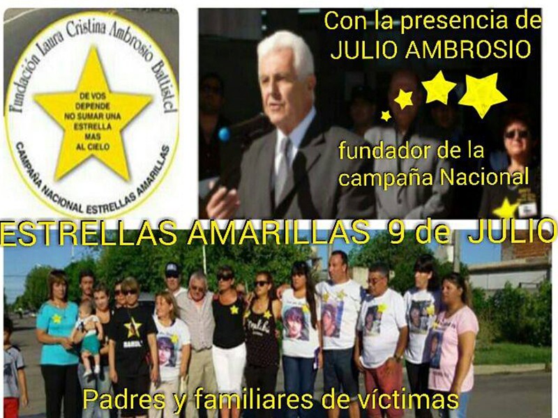 Cabe destacar que “Estrellas Amarillas 9 de Julio”, es una institución integrada por familiares de víctimas de accidentes de tránsito que en el presente año fue declarada como Entidad de Bien Público por la Municipalidad, realiza pintadas de estrellas en el lugar del siniestro de cada víctima y su objetivo principal es llevar adelante campañas de concientización vial.