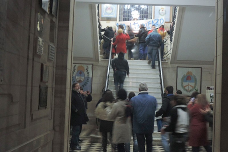 Concentraron frente a la Municipalidad, luego entraron en el Palacio Muncipal y se dirigieron por las escaleras hacia donde los concejales sesionaban, para finalmente volver a la calle y desconcentrar, todo de manera pacífica y sin incidentes.
