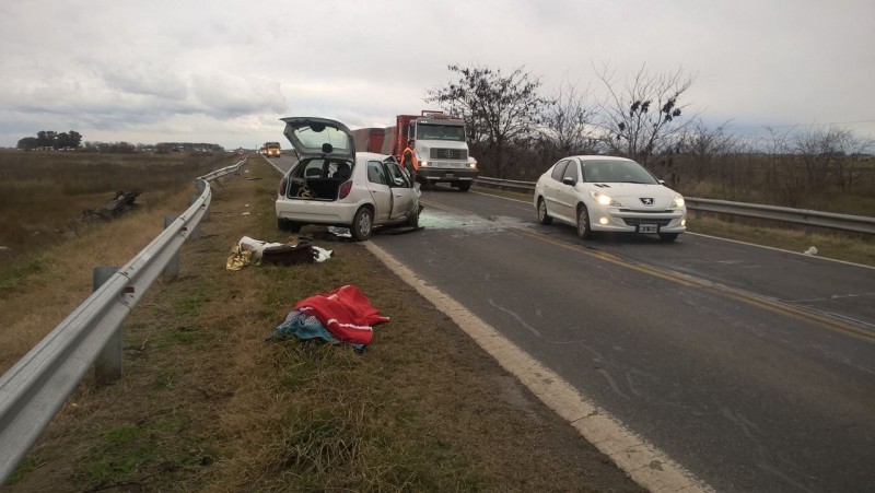 Sin que puedan por el momento precisarse las causas, dos automóviles se embistieron allí de frente. Uno de ellos, un Peugeot 306 que presumiblemente se dirigía desde Bolívar a Olavarría, como resultado del violento impacto literalmente voló sobre el guard rail contrario a su sentido de circulación y fue a caer varios metros debajo de la cinta asfáltica provocando la muerte inmediata de dos de sus ocupantes.