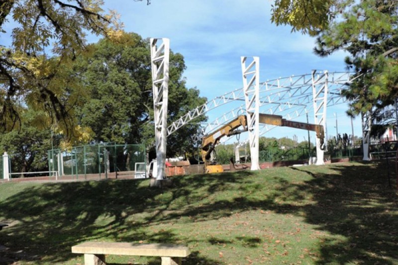 Por una parte, la obra más grande, el techado del Micro Estadio, la semana que viene serán colocadas las chapas, como informó la empresa encargada de la instalación y así quedará concluida la primera etapa, que fue la construcción de los cimientos de las columnas, luego la colocación de éstas y de las cabriadas, de grandes dimensiones para cubrir por completo el lugar y posibilitar así el uso por muchas actividades, como corresponde a semejante estructura; y ahora se colocarán las chapas.