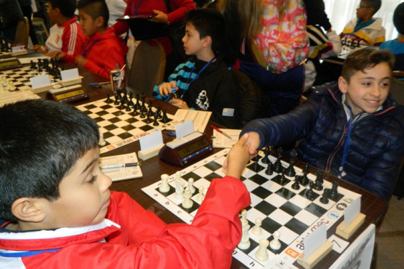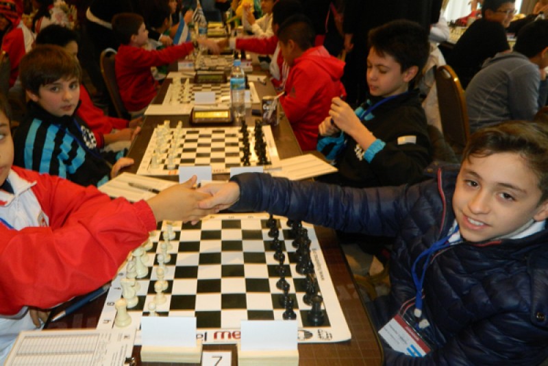 En categoría sub 12, en horas de la mañana, conduciendo piezas negras, Valentín Heredia, hizo tablas en 41 jugadas con el fuerte jugador peruano Mateo Pastor Aragón.