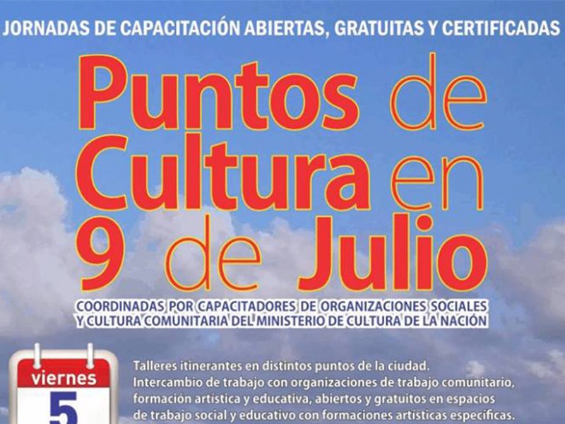El sábado, en el Salón Blanco Municipal, a las 9 hs. se realizará la acreditación de asistentes a las capacitaciones, en tanto que posteriormente, 9,30 hs. se brindará la Capacitación del programa Puntos de Cultura.
