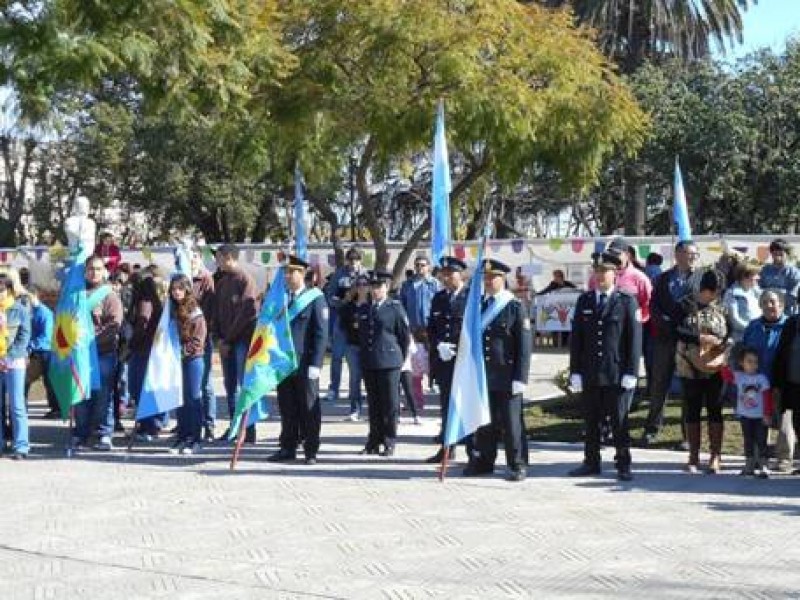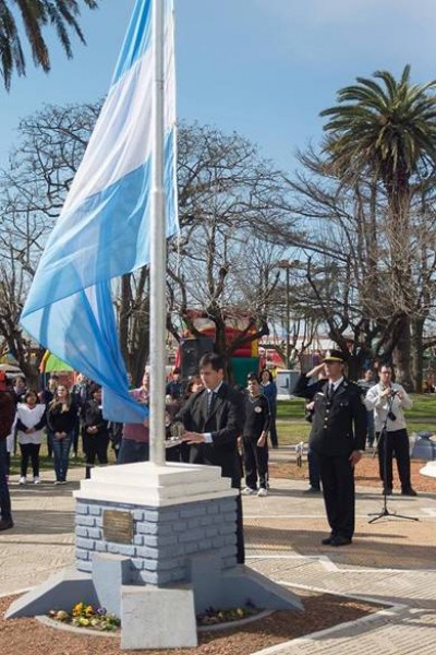 Corría el día y pasado el mediodía se realizó en acto principal en Plaza Rivadavia, donde se inauguró la nueva bandera de General Viamonte y se puso una ofenda floral en el monumento del centro de la plaza a cargo del Intendente y Presidentes de instituciones, los presente fueron Alejandro Marinelli de Bomberos, Daniel Labiano de River y Germán Estévez de Defensores de Belgrano.