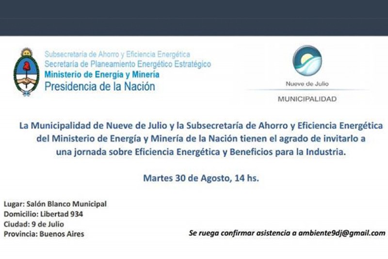 La primera jornada se llevará a cabo el martes 30 de agosto, de 14 a 16 hs. y abordará el tema “Eficiencia Energética y Beneficios para la Industria”, con la organización conjunta de las referidas áreas y la Subsecretaría de Ahorro y Eficiencia Energética del Ministerio de Energía y Minería de la Nación.