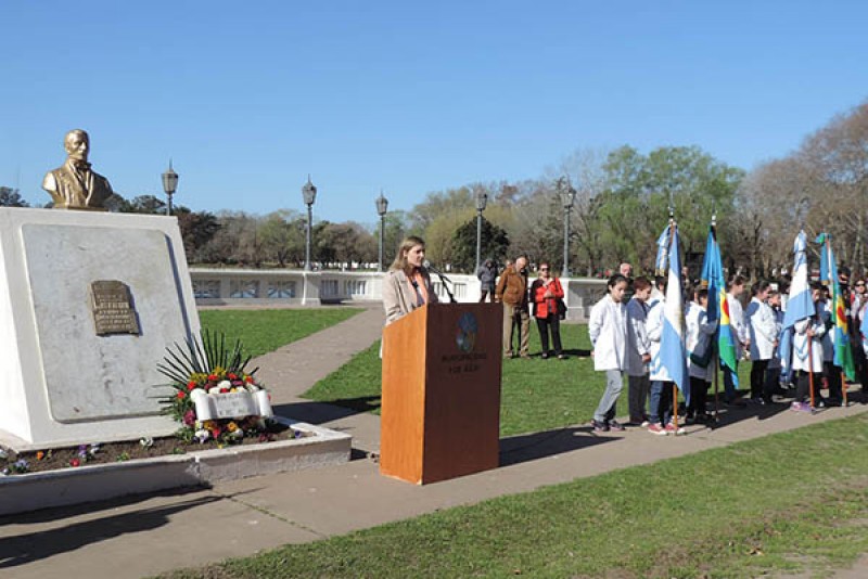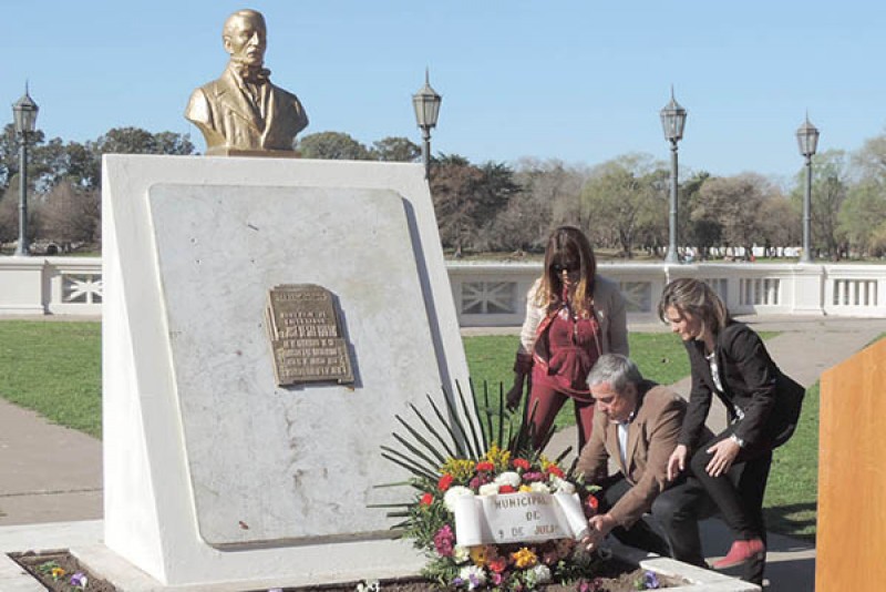 Con motivo de conmemorarse ayer, miércoles 17 de agosto, los 166 años del fallecimiento del Gral. Don José de San Martín, la Municipalidad de Nueve de Julio desarrolló el acto oficial, desde las 14,30 hs., en el Parque Gral. San Martín; que en representación del Intendente Municipal, Mariano Barroso, quien no pudo asistir por no encontrarse en nuestra ciudad al realizar gestiones de gobierno, fue presidido por el secretario de la cartera política, Jorge Della Rocca y la presidente del HCD, Dra. María José Gentile, junto a funcionarios del gabinete municipal, concejales, autoridades educativas y ex combatientes de Malvinas, entre otros.