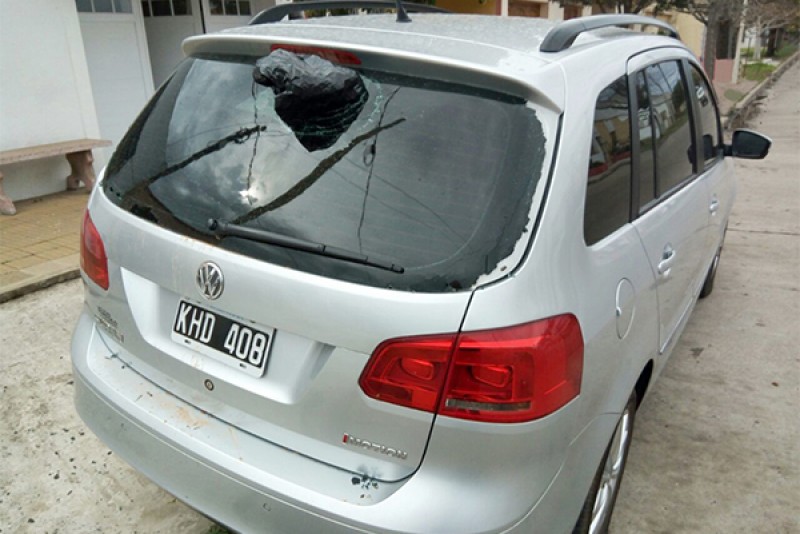 Siendo las 2 de la madrugada, vehículos estacionados en esta zona sufrieron serios daños productos de piedrazos arrojados por malvivientes, lo que activó la alarma de uno de los mismos, un Volkswagen Suran, color gris KHD 408, propiedad de Abel Petraccaro.
