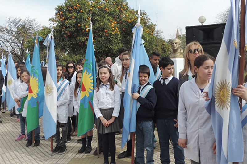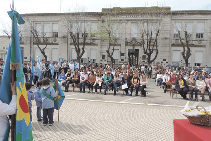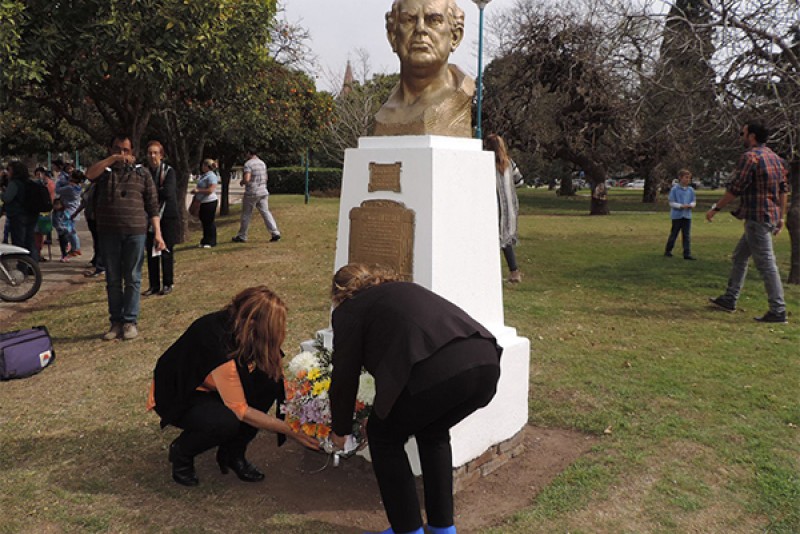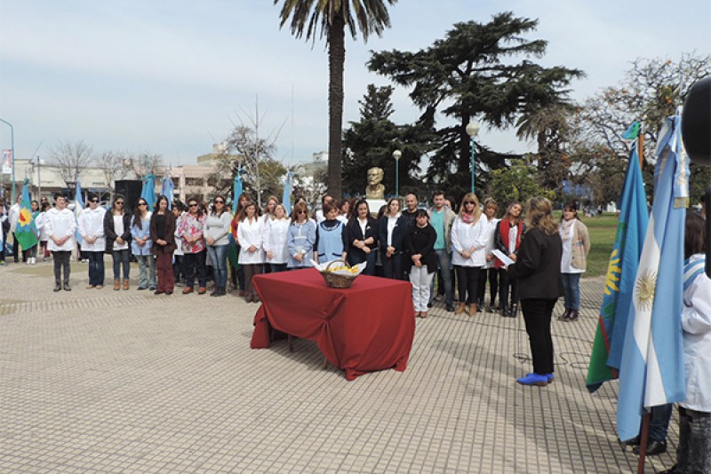 Posteriormente se procedió a efectuar la colocación de una ofrenda floral en el busto que recuerda a Domingo F. Sarmiento y la Inspectora Jefe Distrital, Liliana Vallabriga, procedió a la toma de votos profesionales a todos los docentes que han titularizado en el sistema educativo en el presente ciclo lectivo.