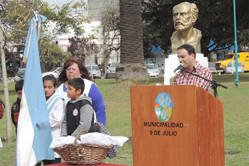 Como estaba previsto, desde las 13,30 hs. de ayer, en H. Yrigoyen entre Av. Mitre y Av. San Martín, la Municipalidad de Nueve de Julio desarrolló los actos oficiales del Día del Maestro, en conmemoración del 128º aniversario del fallecimiento de Domingo F. Sarmiento; los que fueron presididos por la Inspectora Jefe Distrital, Liliana Vallabriga; a quien acompañó -en representación del Intendente Municipal, Cdor. Mariano Barroso-, la Secretaria de Cultura, Educación y Deportes, Julia Cereigido; junto a funcionarios del Gabinete Municipal, el HCD, el Consejo Escolar, autoridades educativas y religiosas.