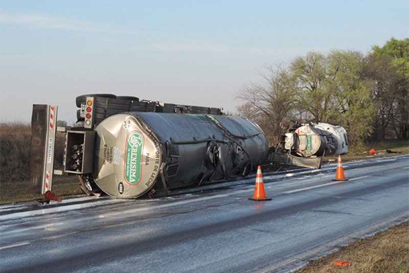 Por otra parte indicó que la ruta permaneció cortada por espacio de algunas horas, dado que 12 efectivos de Bomberos debieron trabajar en la limpieza de la ruta ante la gran cantidad de leche derramada sobre la cinta asfáltica.