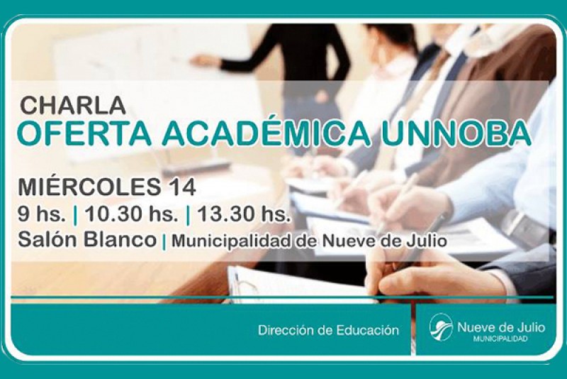 La Municipalidad de Nueve de Julio informa que la jornada informativa sobre la oferta académica de la UNNOBA para los estudiantes de quinto y sexto año de las escuelas secundarias, prevista para mañana, miércoles 14 de Septiembre en el Salón Blanco de la Municipalidad de Nueve de Julio debió suspenderse por razones de fuerza mayor.