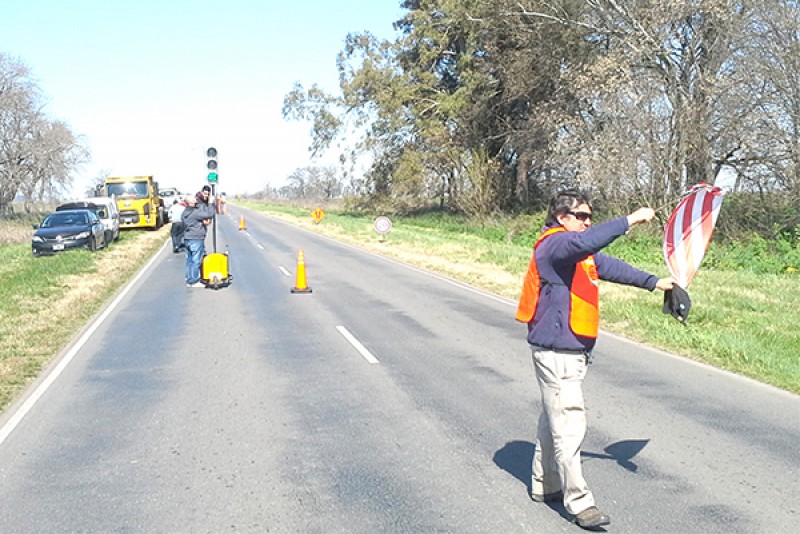 El jueves pasado, un grupo de alumnos 7º año de la Escuela de Enseñanza Secundaria Técnica N° 2 “Mercedes V. de Labbé”, junto a los profesores Carlos Guiotto y Gonzalo Vitale, procedieron, en la intersección de Rutas 5 y 51 a la prueba de los semáforos portátiles desarrollados en el establecimiento educativo, por parte de personal de Vialidad Nacional.