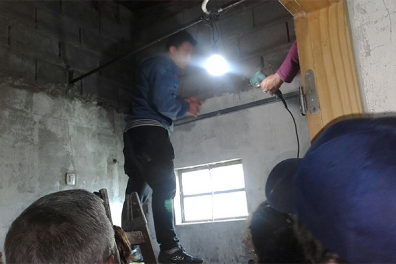 El mismo es dictado por el tallerista Marcelo Licera y persigue el objetivo de capacitar a los alumnos sobre el oficio de la construcción en seco.