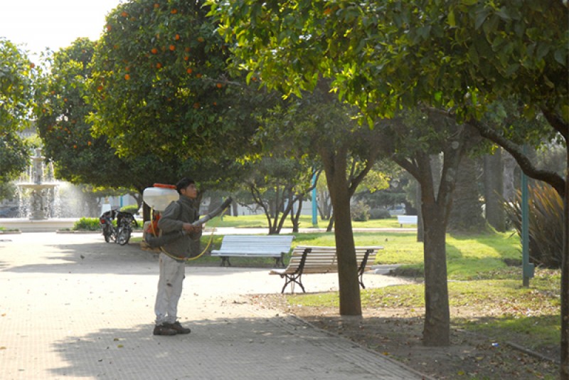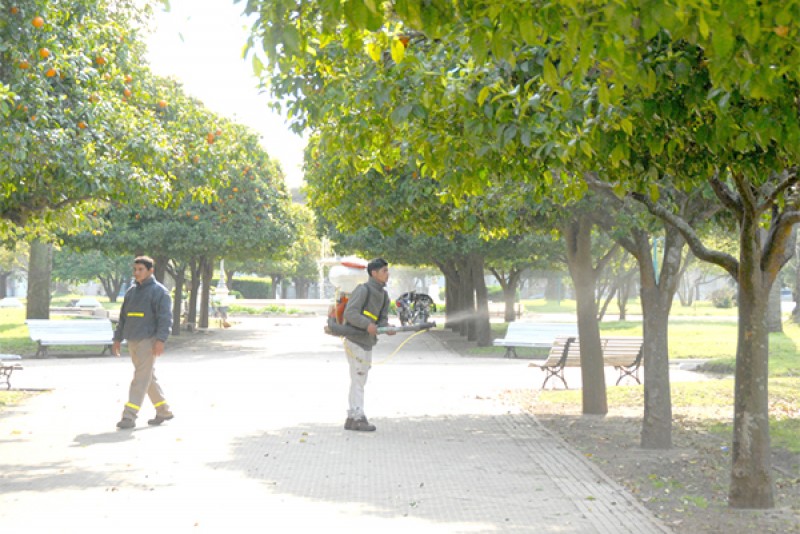 Dichas tareas se efectúan en Plaza Gral. Belgrano, y se extenderán hacia distintos sectores de la comunidad.