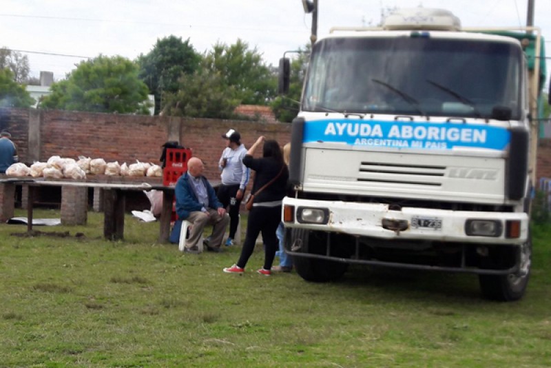 En el estadio “santo” se dispuso un lugar acondicionado para almacenar donaciones dirigidas a “Ayuda Aborigen”, entidad que llevan adelante Alberto Vadillo y su hijo Oscar para colaborar con las comunidades aborígenes del norte argentino.