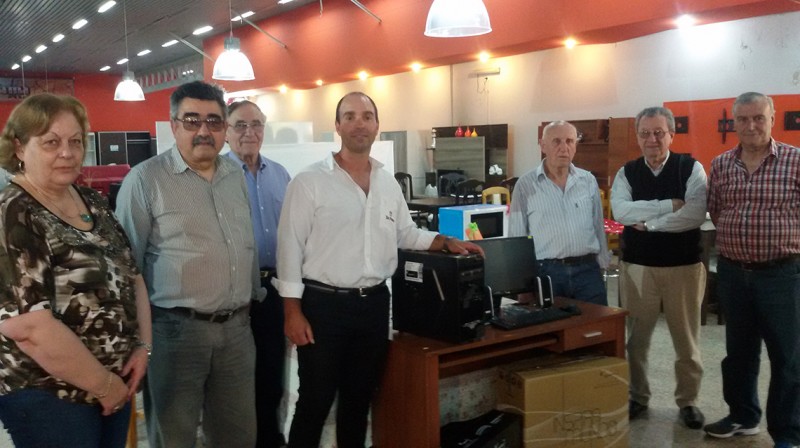Integrantes de CEPRIL acompañados de Marcelo Suanno y la computadora donada. Foto De Sogos.