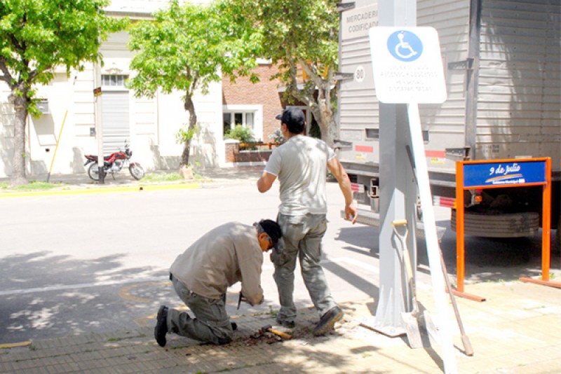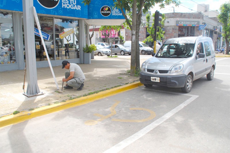 La Dirección de Tránsito de la Municipalidad de Nueve de Julio procedió en el mediodía del lunes a la demarcación y señalización de un sector para el ascenso y descenso de vehículos de personas con discapacidad, en la esquina de Avda. San Martín y Libertad; previéndose continuar luego con similar tarea en otros puntos de la ciudad.
