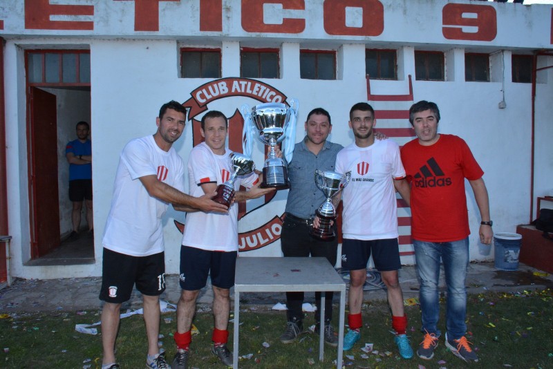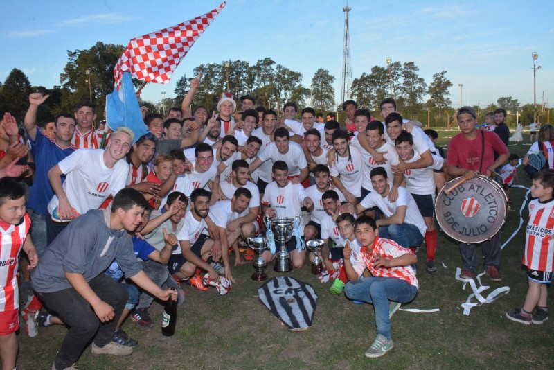En la segunda parte el trámite no cambió, con un Atlético “atado” y un San Martín impotente que no podía seguir descontando el 0-3 sufrido el pasado domingo en el partido de ida, jugado en campo de Once Tigres. Sin embargo, con el correr de los minutos, el local fue serenando la pelota y jugando con la desesperación de los de Sampietro, llegando ale empate en tiempo adicionado por medio de Pablo Maccagnani, que puso la frutilla del postre para el gran festejo del público de Atlético 9 de Julio, Club que se convierte ahora en el más ganador de la Liga local, con 16 títulos.