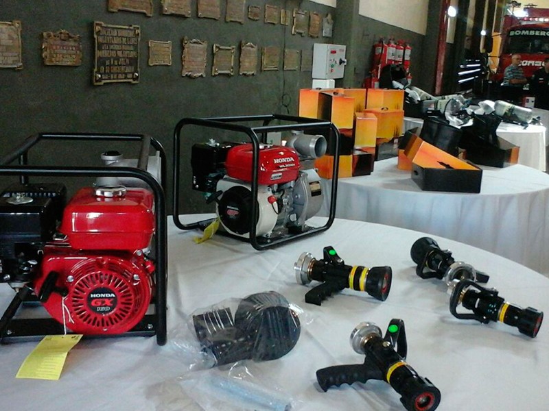 Néstor Márquez Comandante General del Cuerpo Activo de Bomberos Voluntarios de 9 de Julio, explicó a los medios presentes la importancia de los elementos adquiridos.