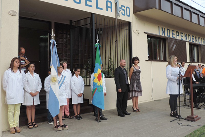 En horas de la tarde del pasado sábado, la Escuela Nº50 “Independencia Argentina”, desarrolló los actos conmemorativos de sus Bodas de Oro, instancia que dio lugar a un emotivo acto en la sede del establecimiento, del que participaron autoridades municipales, educativas, del establecimiento, la comunidad educativa, ex alumnos, ex docentes y ex alumnos.
