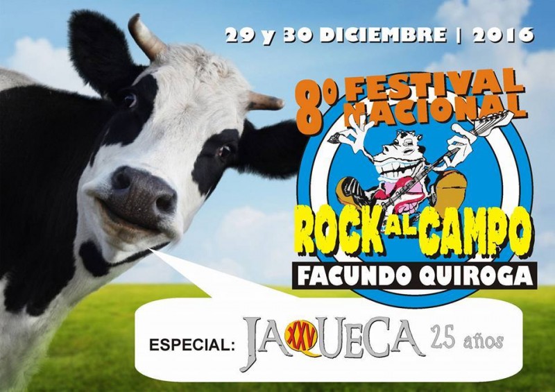 Como es habitual cada año, se habrá de desarrollar el jueves 29 y viernes 30 de diciembre, en la localidad de Facundo Quiroga, la 8ª edición del tradicional festival “Rock al Campo 2016”, que cuenta con la organización de la agrupación de rock “Jaqueca” que festejaran sus 25 años.