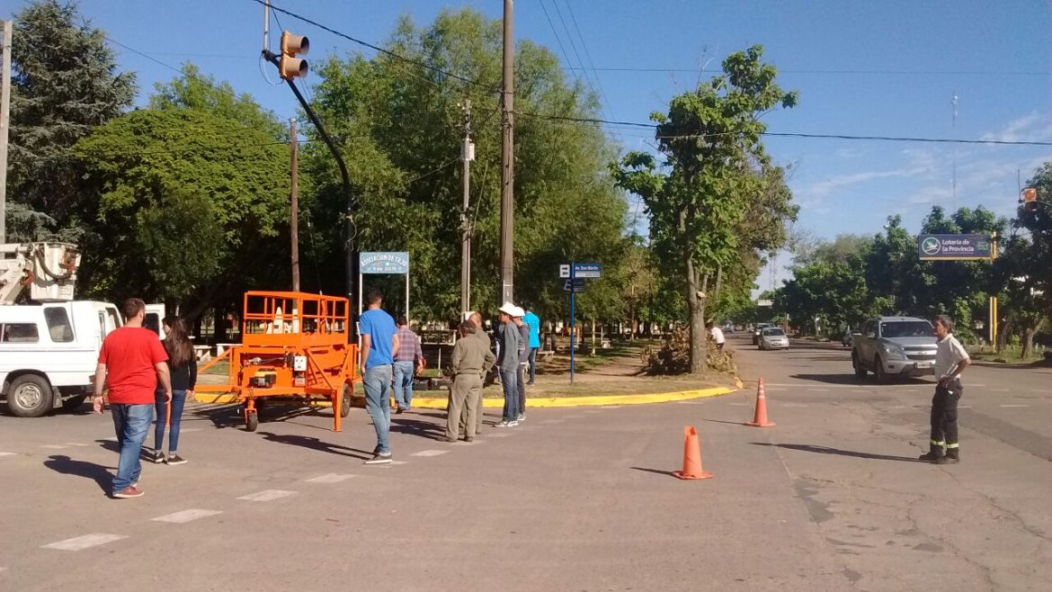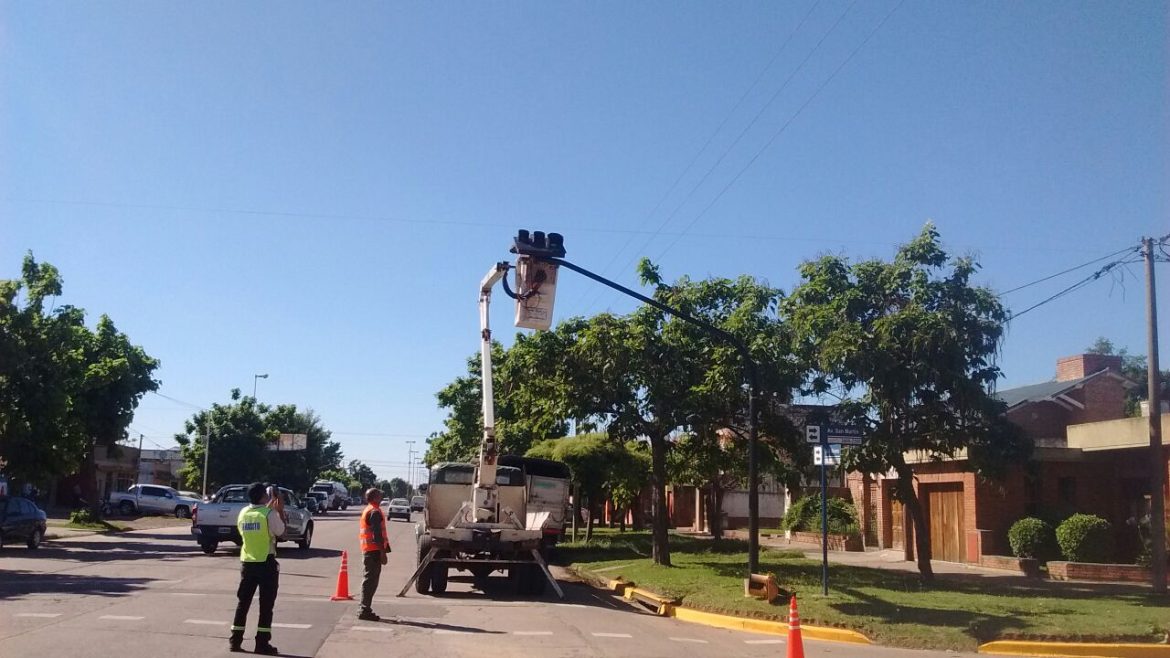 En la mañana de hoy se comenzaron a efectuar la colocación de un nuevo semáforo que reemplaza al que se encontraba instalado en esta intersección sin funcionamiento desde hace tiempo.