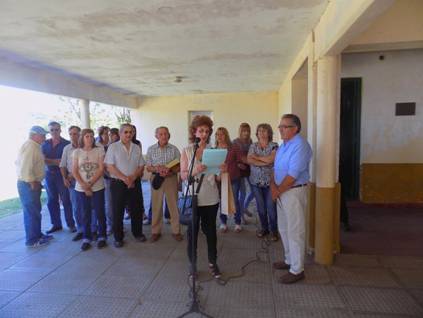 A su izquierda estaban sus libros “Historia y recuerdos”, “Cosas del siglo pasado” y “No es cuento, cuentos de campo”. Después expresó que había sido alumno de esa escuela con buenos promedios, pero no tener ser el placer de ser abanderado.
