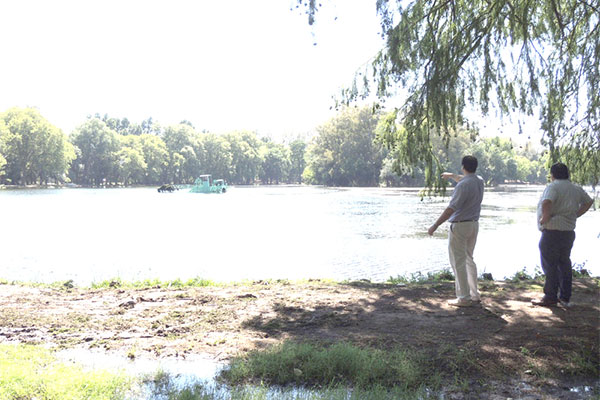 Posteriormente, en tanto, en el Parque Gral. San Martín, Barroso observó el trabajo de limpieza del espejo de agua que se ejecuta mediante una máquina contratada por el municipio para erradicar aquellas en mayor profundidad, el que se encuentra muy avanzado.