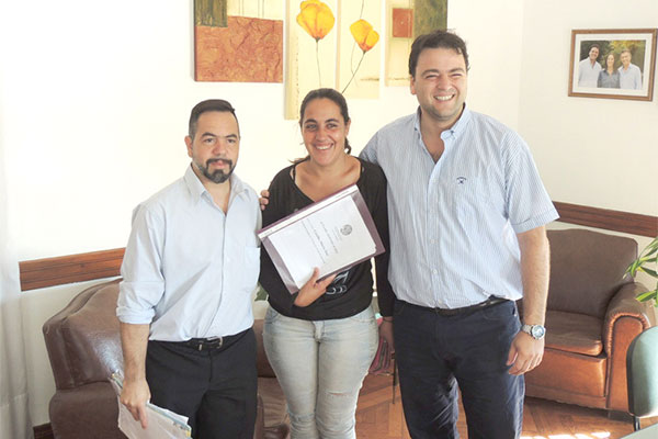 En la mañana de ayer, jueves 5, y en el despacho oficial, el Intendente de Nueve de Julio, Cdor. Mariano Barroso, acompañado del Director de Casa de Tierras, Dr. José Sarti, llevó adelante la firma y entrega de actas de adjudicación de lotes y entrega de boletos de compra – venta correspondientes a lotes del Plan Familia Propietaria a vecinos de nuestro medio.