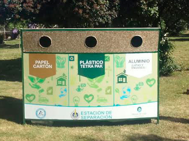 Se trata de contenedores para el depósito de papel y cartón, plásticos y envases tetra, y aluminio, realizados en planchas de tetra pack, conformadas con material reciclado y prensado, que ofrece gran resistencia a la temperatura y las lluvias.
